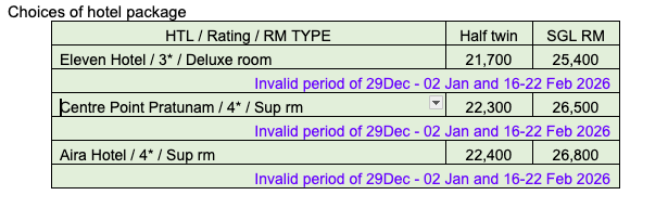 • Any expenses did not mention on package prices guest’s own account on spot.